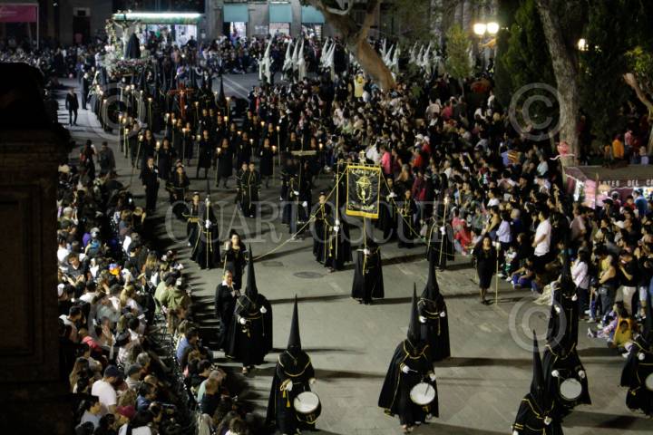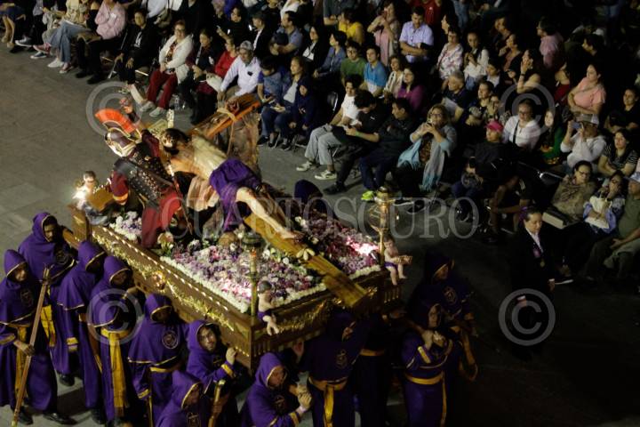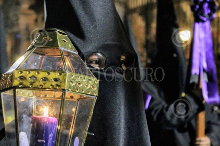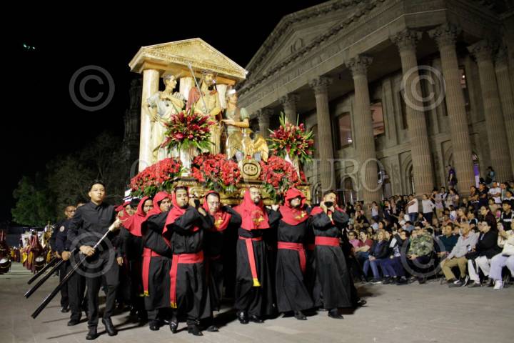 SAN LUIS POTOSÍ, SAN LUIS POTOS, 18ABRIL2025.- Durante la noche de este Viernes Santo, se llevó  a cabo la tradicional Procesión del Silencio en su edición 72 donde se conmemora la muerte y pasión de Cristo y a Nuestra Señora de la Soledad. Participaron 32 cofradías que iniciaron en el Templo de Nuestra Señora del Carmen, lugar donde es originaria esta celebración y se hizo un recorrido por las principales calles del centro histórico. Es una de las celebraciones de Semana Santa más importante de México y fue declarada parte del patrimonio cultural del estado de San Luis Potosí en el 2013.   FOTO: MARCELO PALACIOS/CUARTOSCURO.COM