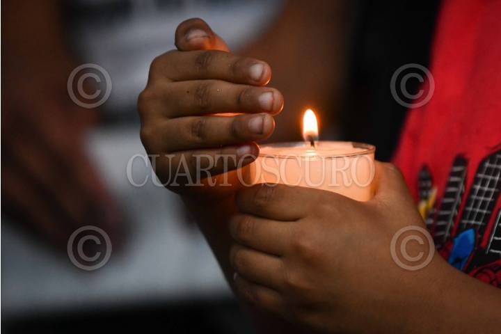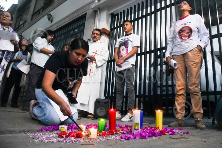CIUDAD DE MÉXICO, 26ABRIL2025.- Colectivos de búsqueda de personas desaparecidas participaron en la vigilia y oración por María del Carmen Morales, madre buscadora, y su hijo Jaime Daniel Ramírez, asesinados el pasado 25 de abril. Los familiares exigieron justicia al exterior de la representación de "Casa Jalisco". FOTO: MARIO JASSO/CUARTOSCURO.COM
