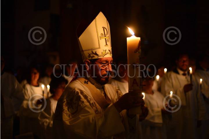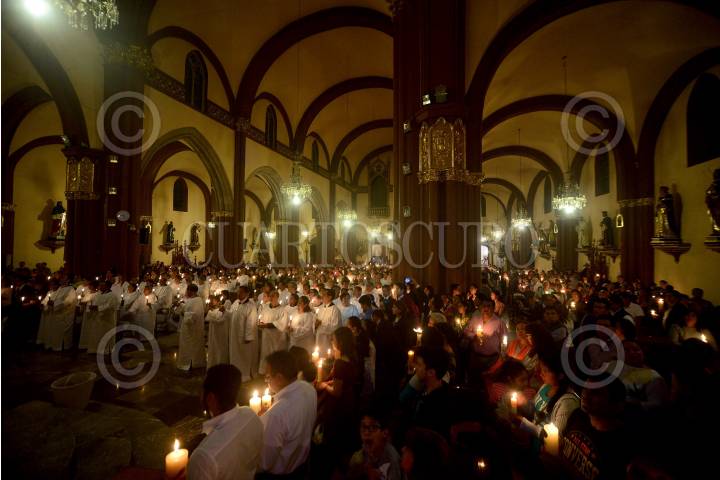 XALAPA, VERACRUZ, 01ABRIL2018.- El Arzobispo Hipólito Reyes Larios presidió la celebración del fuego nuevo y la vigilia pascual en la Catedral ante decenas de fieles . FOTO: ALBERTO ROA /CUARTOSCURO.COM