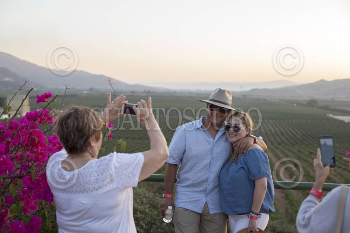 ENSENADA, BAJA CALIFORNIA, 08AGOSTO2016.- El Valle de Guadalupe se engalanó con el inicio de la Fiesta de la Vendimia edición 2016 celebrada en la vitivinícola L.A. Cetto. El tradicional evento llamado "Fiesta de Colores" tuvo una duración de 12 horas y contó con la presencia de cientos de personas que asistieron a disfrutar de los mejores vinos, exquisita gastronomía, tauromaquia y pudieron disfrutar del tradicional concurso de pisado de uvas. La celebración del vino más grande de México se realizará del 4 al 22 de agosto en las 62 casas vinícolas de región y se espera una asistencia de 90 mil personas, quienes podrán disfrutar del extraordinario paisaje, más de 45 conciertos, festivales y degustaciones, lo cual ha impactará favorablemente la economía de la región. FOTO: CHRISTIAN SERNA /CUARTOSCURO.COM