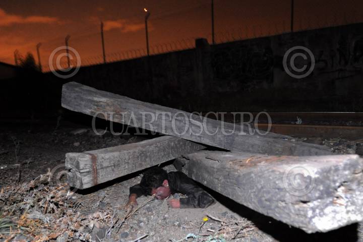 TLALNEPANTLA, ESTADO DE MÉXICO, 05JUNIO2011.- Un hombre de apróximadamente 40 años fue hallado sin vida en la calle Ferrocarril y avenida Lerma en la colonia Tlaxcolpan. El cuerpo presentaba signos de tortura y se encontraba bajo los bloques de madera mejor conocidos como "durmientes" en las vías del tren. FOTO: L.M. ACEVEDO/CUARTOSCURO.COM