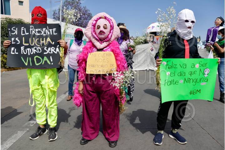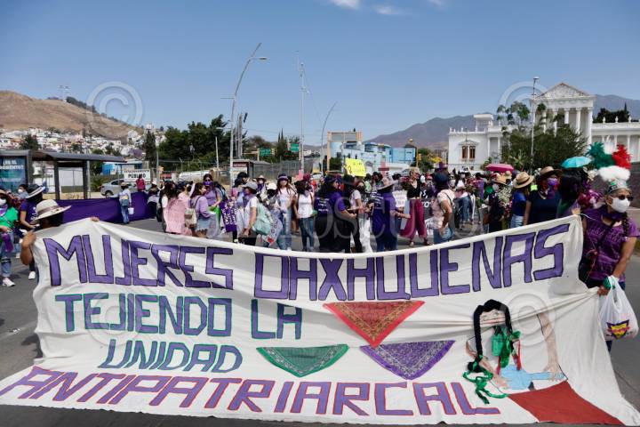 Mujeres oaxaqueñas marcharon de la Antimonumenta a la Casa Oficial de gobierno para conmemorar el Día Internacional de la Mujer y exigir alto a la violencia contra ellas.