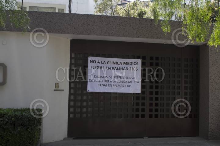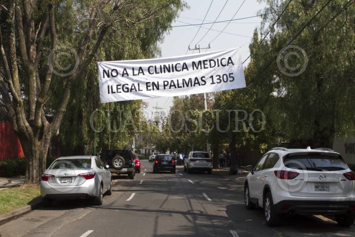 CIUDAD DE MÉXICO, 22FEBRERO2016.- Vecinos de las Lomas de Chapultepec que se oponen a una clínica médica "Centro de Diagnostico Integral BH", que se ubica en la avenida de Palmas 1305 y al estacionamiento en Sierra Gorda120 clausuraron pacíficamente el predio de Palmas. Los inconforme señalaron que el uso de suelo de ambos es habitacional unifamiliar, por lo que las construcciones de estos proyectos transgreden las normas de construcción de la colonia, además expresaron que han sido amenazados y amedrentados por gente que se dice cercana a la clínica. FOTO: MOISÉS PABLO /CUARTOSCURO.COM