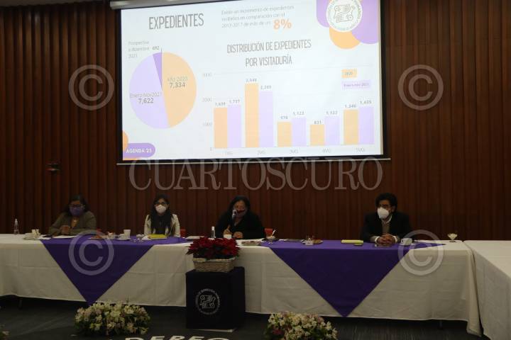 Nasheli Ramírez de la Comisión de Derechos humanos de la Ciudad en conferencia de prensa sobre sus actividades post pandemia, en la Ciudad.