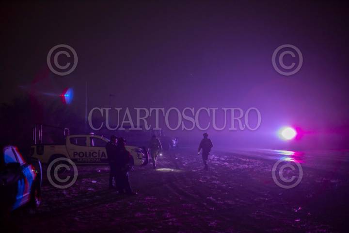 ESQUERÍA, NUEVO LEÓN, 20MARZ2024.- Entre las carreteras Miguel Alemán y Ojo de Agua, en el municipio de Pesquería, Nuevo León, fueron encontrados al menos 10 cuerpos calcinados, así como un vehículo incendiado en el cual se encontraron tres de las víctimas. Policía municipal, ministeriales y Guardia Nacional realizan las investigaciones correspondientes. FOTO: CUARTOSCURO.COM
