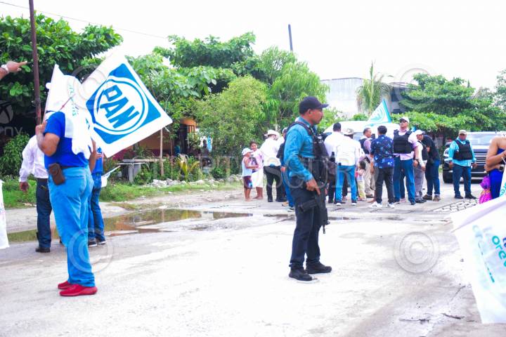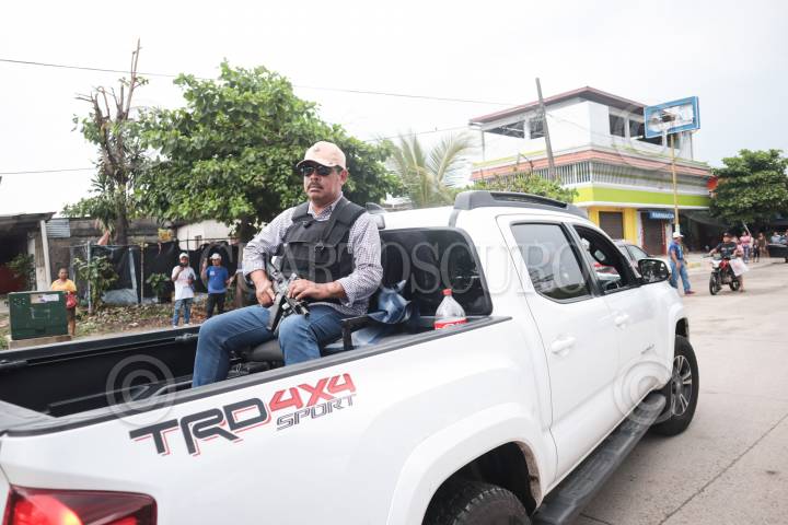 HUIXTLA, CHIAPAS, 19MAYO2024.- Ante los recientes ataques que ha se han registrado en Chiapas contra candidatos a la alcaldías se ha reforzado su seguridad. Tal es el caso de Willy Ochoa, candidato a Senador por la coalición Fuerza y Corazón por México, quien ha recibido amenazas se le puede ver con hombres armados y elementos de la Guardia Nacional. Las imágenes durante un recorrido en el municipio Huixtla junto la candidata, Olvita Palomeque Ochoa. FOTO: DAMIÁN SÁNCHEZ/CUARTOSCURO.COM