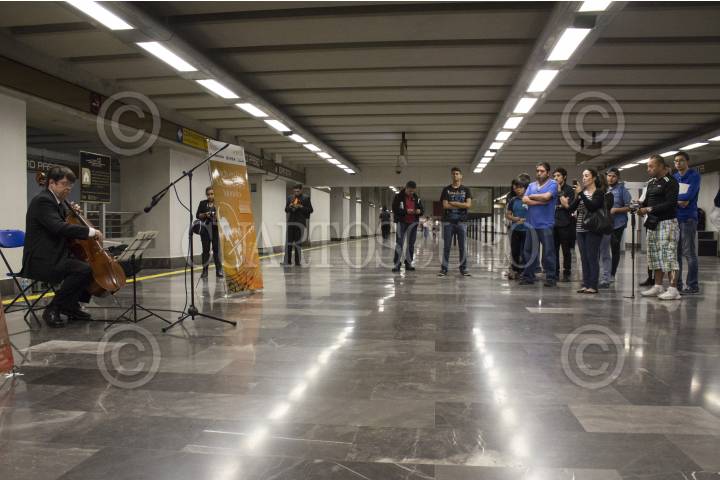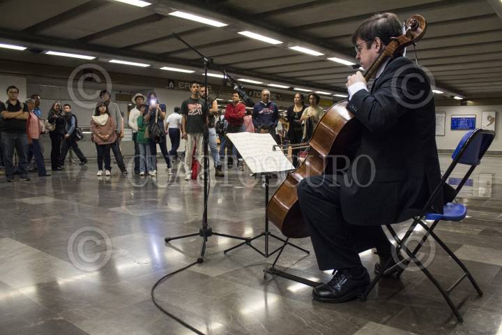 MEXICO, D.F., 21MARZO2015.- En el marco del 330 aniversario del natalicio de Johann Sebastian Bach, el Instituto Nacional de Bellas Artes organizó una serie de conciertos en las estaciones Ermita, Zapata y Mixcoac de la línea 12 del metro, en las que el músico Ignacio Mariscal interpretó piezas del autor alemán. En el marco del aniversario se celebraron conciertos e interpretaciones de Bach en estaciones del metro de todo el mundo. FOTO: DAVID POLO /CUARTOSCURO.COM