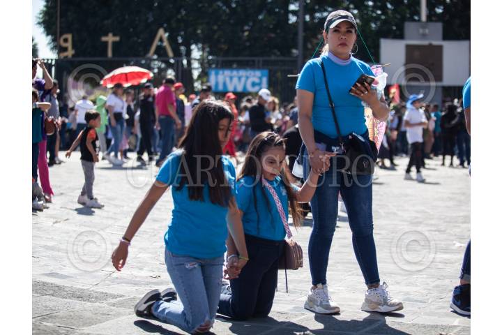 CIUDAD DE MÉXICO, 08DICIEMBRE2024.- A días de la celebración de la Virgen la familia castro desde hace 4 años en estas fechas cumple una promesa de llegar a visitarla a la basílica de rodillas luego de que Iván integrante de la familia se hubiera recuperado después de estar grave en el hospital. FOTO: ANDREA MURCIA /CUARTOSCURO.COM