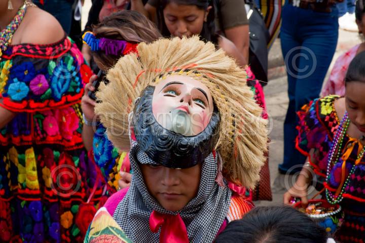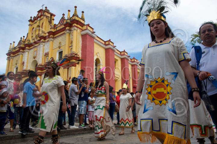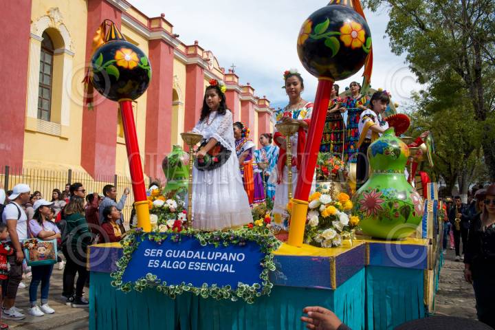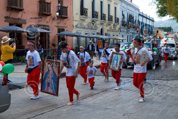 SAN CRISTÓBAL DE LAS CASAS, CHIAPAS, 09DICIEMBRE2023.- Decenas de guadalupanos salieron en peregrinación con la imagen de la Virgen María desde la Iglesia principal de la Virgen de Guadalupe, acompañada de carros alegóricos y Parachicos, la imagen de la venerada Virgen recorrió las principales calles de la Ciudad. FOTO: ISABEL MATEOS /CUARTOSCURO.COM