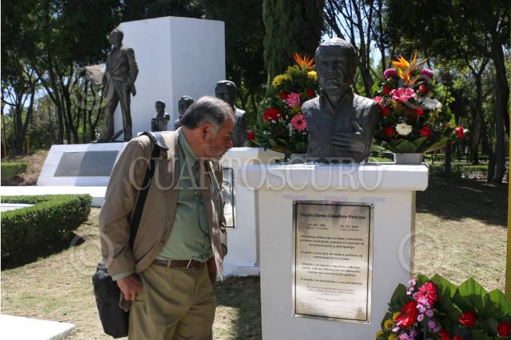 CIUDAD DE MÉXICO, 25MARZO2019.- Esta mañana a través varios integrantes de Morena lamentaron el deceso del periodista y diputado local Virgilio Caballero, el propio Presidente de México expresó sus condolencias en su conferencia mañanera en Palacio Nacional. Virgilio Caballero fue uno de los fundadores de Morena y un periodista destacado, en 2014 recibió el Premio Nacional de Periodismo Cultural Fernando Benítez. En la imagen del 11 de noviembre de 2013 durante la develación de un busto en su honor colocado en el Parque de los Periodistas Ilustre, en la alcaldía de Venustiano Carranza. FOTO: CUARTOSCURO.COM