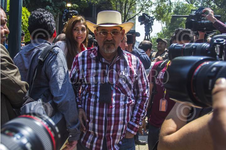 MÉXICO, D.F., 06MAYO2015.- Hipólito Mora, ex dirigente de autodefensas en Michoacán y candidato a Diputado Federal por Movimiento Ciudadano junto a Virginia Mireles y Dante Delgado, Coordinador Nacional de Movimiento Ciudadano, acudieron a las Instalaciones de la Procuraduría General de la República para sostener una reunión con Arely Gómez, Procuradora General de la República. FOTO: ENRIQUE ORDÓÑEZ /CUARTOSCURO.COM