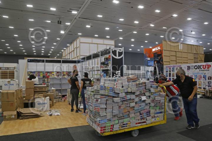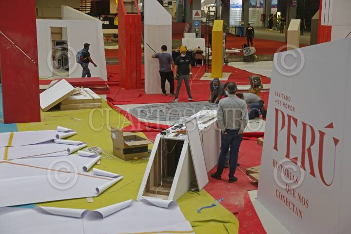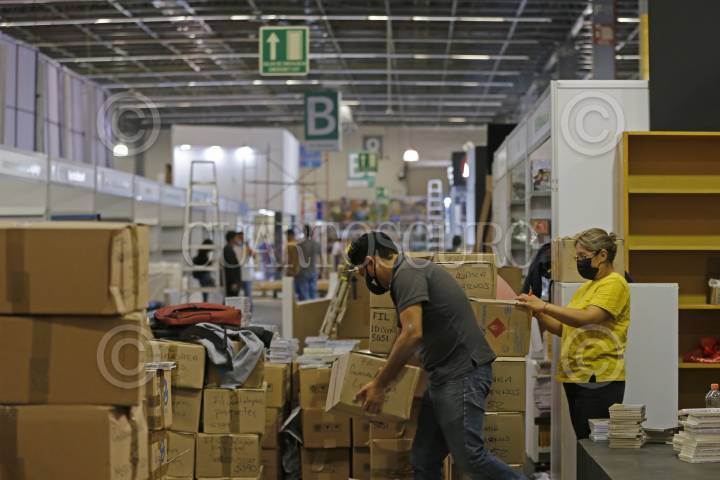Trabajadores preparan los últimos detalles para la Feria Internacional del Libro (FIL), a celebrarse del 27 de Noviembre al 5 de Diciembre en Expo Guadalajara.