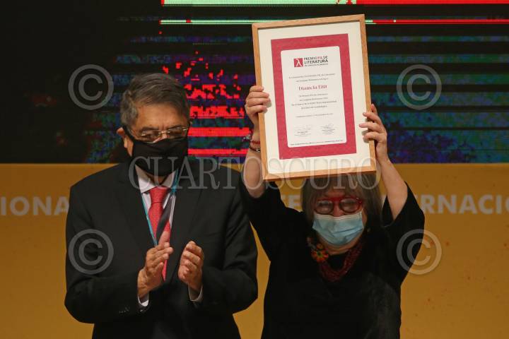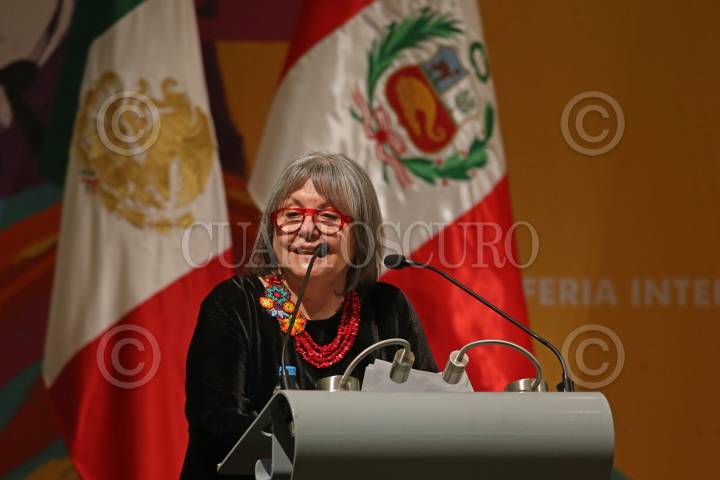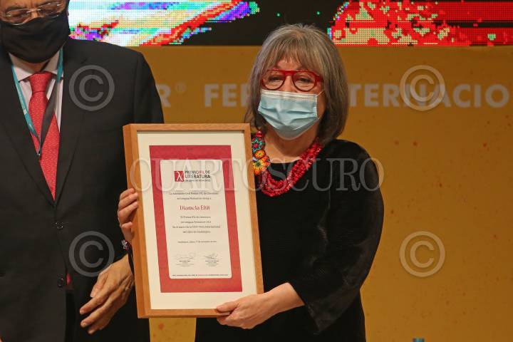 Diamela Eltit escritora Chilena recibió el premio FIL de Literatura en Lenguas Romances, esto durante la ceremonia de Inauguración de la edición 35 de la Feria Internacional del Libro de Guadalajara (FIL) en Expo Guadalajara y en donde Perú es el país invitado de honor.