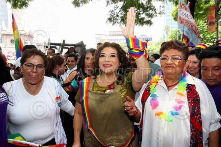 CIUDAD DE MÉXICO, 29JUNIO2024.- Clara Brugada, jefa de gobierno electa, durante su participación en la Marcha del Orgullo LGBT+ realizada en avenida Paseo de la Reforma. Estuvo acompañada de Ernestina Godoy, futura titular de la Consejería Jurídica de México, y Citlalli Hernández, secretaria general de Morena. FOTO: PRENSA CLARA BRUGADA/CUARTOSCURO.COM