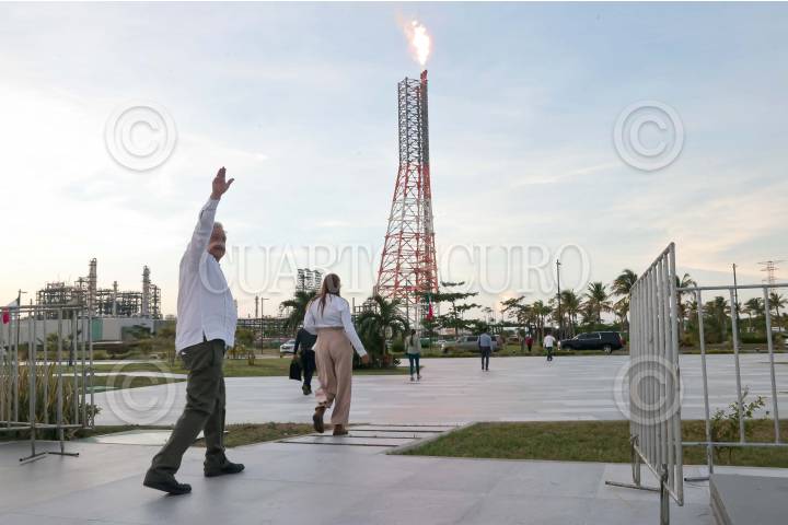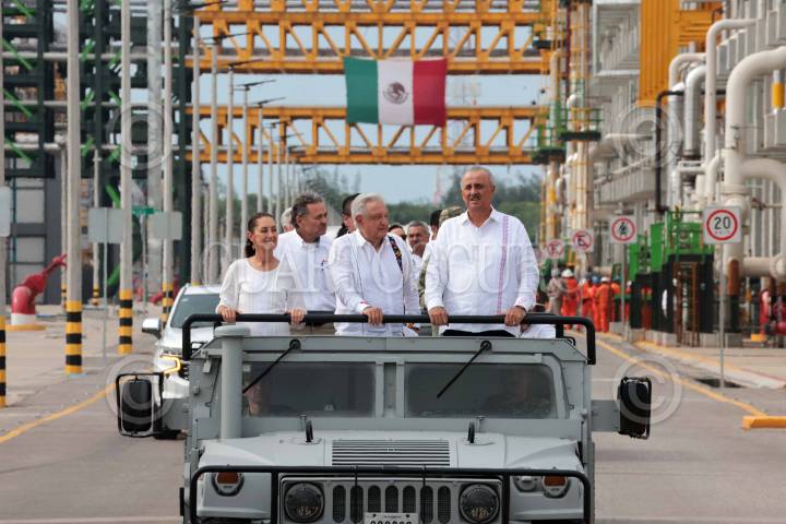 DOS BOCAS PARAÍSO, TABASCO, 03AGOSTO2024.- Andrés Manuel López Obrador, presidente de México y Claudia Sheinbaum Pardo, virtual presidenta electa encabezaron el inicio de producción de la refinería Dos Bocas “Olmeca”. FOTO: PRESIDENCIA/CUARTOSCURO.COM