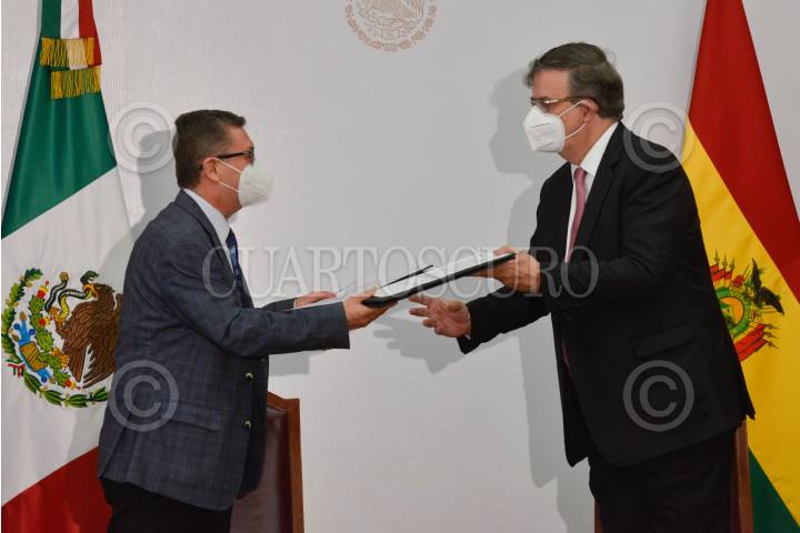Marcelo Ebrard, secretario de Relaciones Exteriores y José Crespo Fernández, embajador de Bolivia en México, encabezaron el evento protocolario para anunciar la supresión de visas a nacionales bolivianos que entrará en vigor a partir del próximo 24 de mayo, ésto en el marco del 190 aniversario de Relaciones Diplomáticas entre México y Bolivia.