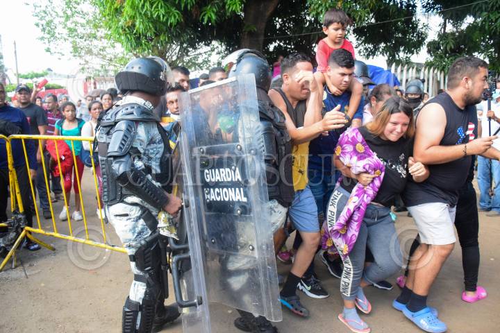 Migrantes ingresaron por la fuerza a las oficinas de regularización migratoria en Tapachula, Chiapas, para exigir documentos que les permitan transitar en el territorio.