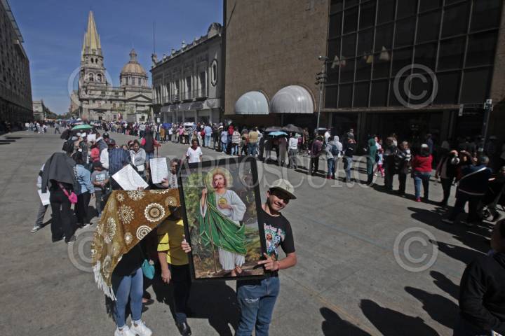 GUADALAJARA, JALISCO. 24ENERO2025.- El día de hoy miles de fieles se dieron cita en la Catedral Metropolitana, para presenciar la visita del Santo, San Judas Tadeo para así agradecer favores y pedir por sus seres queridos, esto en un recorrido previsto del 20 de enero al 3 de febrero por varias parroquias del estado. FOTO: FERNANDO CARRANZA GARCIA / CUARTOSCURO.COM