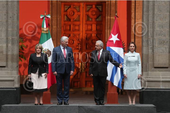 CIUDAD DE MÉXICO, 17OCTUBRE2019.- Andrés Manuel López Obrador, Presidente de México, recibió la visita oficial del presidente de la República de Cuba, Miguel Mario Díaz-Canel Bermúdez, en el Patio de Honor de Palacio Nacional. Los acompañaron sus esposas, la señoras Beatriz Gutiérrez Müller y Lis Cuesta. FOTO: PRESIDENCIA /CUARTOSCURO.COM
