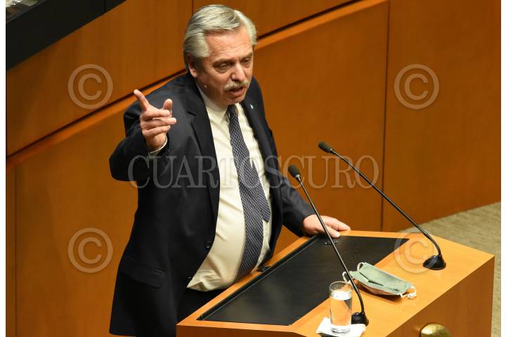 Alberto Fernández, presidente de Argentina, durante su participación en la sesión Solemne en el Senado.