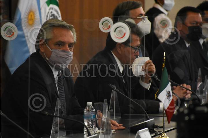 Marcelo Ebrard, canciller mexicano, Alberto Fernández, presidente de Argentina y Ricardo Monreal, presidente de la Junta de Coordinación Política del Senado de la República.