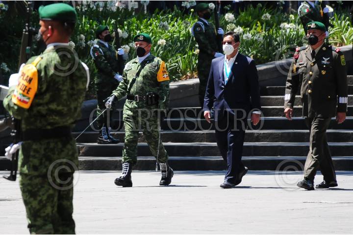Luis Arce Catacora, Presidente de Bolivia, colocó una ofrenda frente al Monumento a los Niños Héroes.