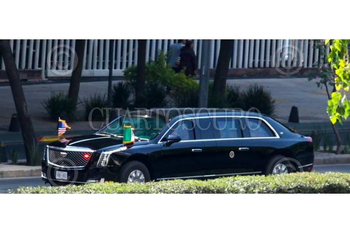 Vehículo llamado la Bestia, dónde se traslada el Primer Mandatario de Estados Unidos de Norteamérica, Joe Biden, sobre Paseo de la Reforma.