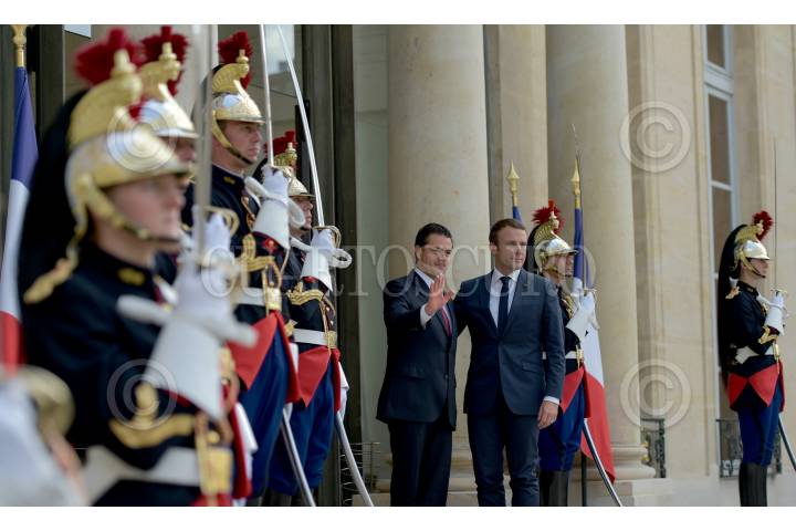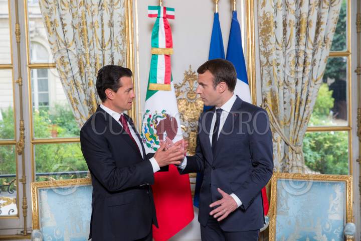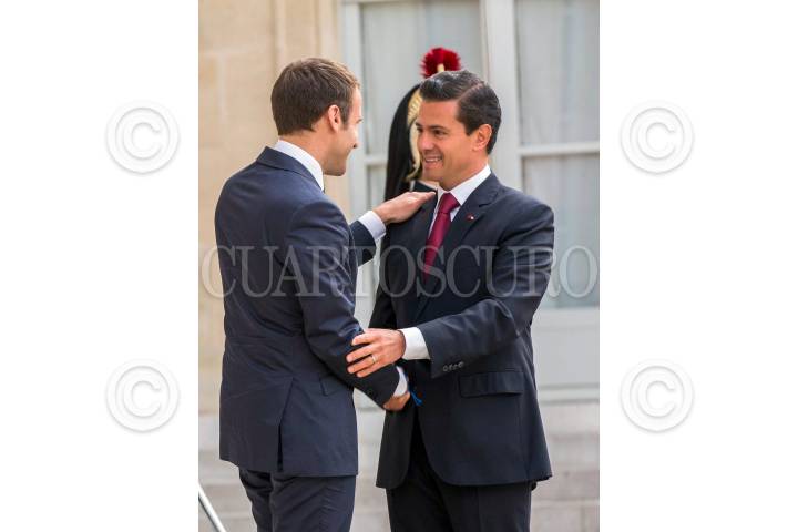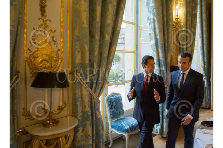 PARÍS, FRANCIA, 06JULIO2017.- A su arribo al Palacio del Eliseo, el Presidente de México, Enrique Peña Nieto fue recibido por el Mandatario francés, Emmanuel Macron. Ambos Mandatarios sostuvieron un encuentro en el marco de la Visita de Trabajo que el Presidente Peña Nieto realizó a París. FOTO: PRESIDENCIA /CUARTOSCURO.COM