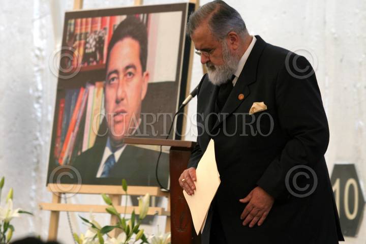 MEXICO, D.F., 23SEPTIEMBRE2005.- Se realizó un homenaje a José Antnio Bernal, tercer visitador de la CNDH, quien muriera en el accidene que sufrieron funcionariso de la PFP durante un vuelo en helicoptero, por parte de la Comisión Nacional de Derechos Humanos. En la imagen Emilio Alvárez Icaza, presidente de la Comisión de Derechos Humanos del DF. FOTO: Moisés Pablo/CUARTOSCURO.COM