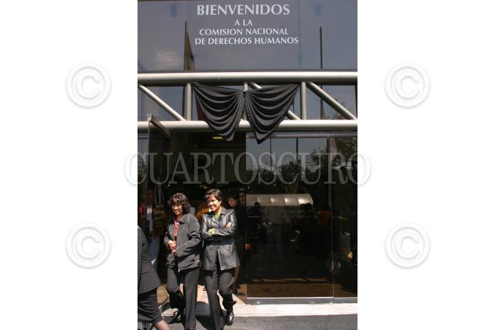 MEXICO, D.F., 23SEPTIEMBRE2005.- Se realizó un homenaje a José Antonio Bernal, tercer visitador de la CNDH, quien muriera en el accidene que sufrieron funcionariso de la PFP durante un vuelo en helicoptero, por parte de la Comisión Nacional de Derechos Humanos. Como parte del luto que vive la dependencia se coloco un moño negro. FOTO: Moisés Pablo/CUARTOSCURO.COM