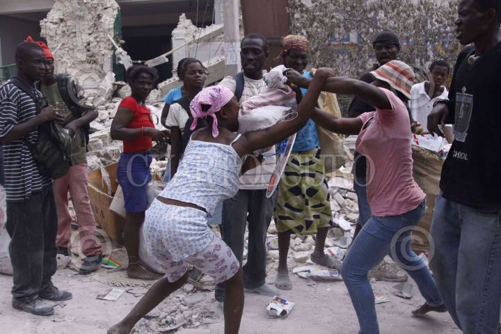 PUERTO PRÍNCIPE, HAITÍ, 19ENERO2010.- Las peleas por víveres se ven por doquier durante los saqueos que se han suscitado en el centro de la ciudad. FOTO: IVÁN STEPHENS/CUARTOSCURO.COM