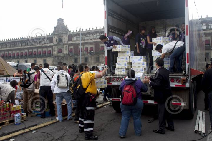MÉXICO, D.F., 24SEPTIEMBRE2013.- Siguen llegando la ayuda al centro de acopio ubicado en el Zócalo , para los damnificados de las lluvias en el país provocados por los meteoros Ingrid y Manuel. FOTO: MOISÉS PABLO /CUARTOSCURO.COM