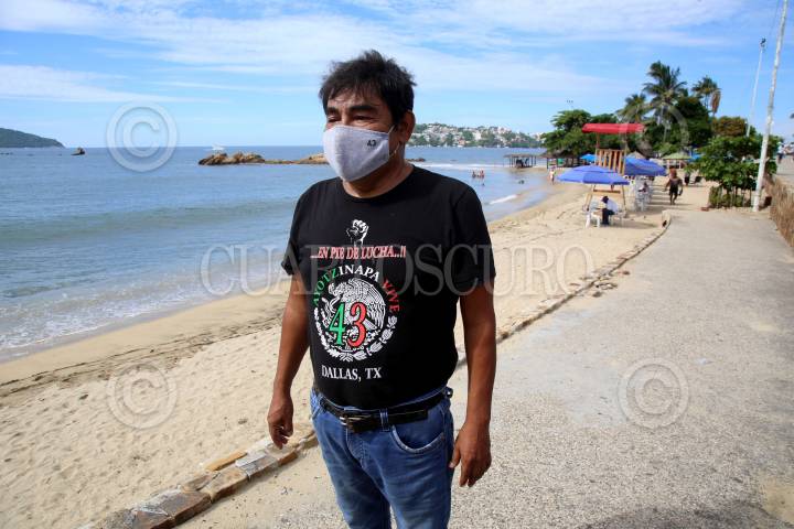Felipe de la Cruz, vocero de los padres de los 43 normalistas desaparecidos de Ayotzinapa, ofreció una conferencia de prensa en la playa.