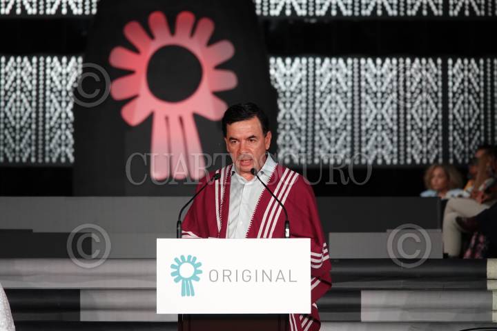 El vocero Jesús Ramírez Cuevas durante inauguración y la primera pasarela Uénakua con motivo de la Segunda Edición del evento Original realizada en la explanada de la Casa Miguel Alemán, del Complejo Cultural Los Pinos