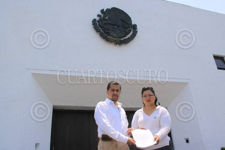 MÉXICO, D.F., 24ABRIL2009.- Francisco López, Cristina Moreno voceros del movimiento blanco acudieron a la residencia oficial de los Pinos en donde entregaron una carta a Luis Felipe Bravo Mena, Secretario Particular del Presidente Felipe Calderón para proponer la instauración del “Día del Homenaje Ciudadano a los Héroes Caídos por la Seguridad de la Patria” FOTO: SÁSHENKA GUTIÉRREZ/CUARTOSCURO.COM