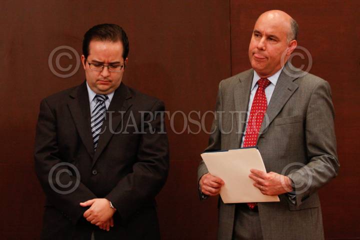 MÉXICO, D.F., 06SEPTIEMBRE2010.- Alejandro Poiré, vocero de seguridad nacional y Salvador Beltrán de Rió, subsecretario para América Latina y El Caribe de la cancillería en conferencia de prensa, dieron a conocer los autores de la matanza de 72 inmigrantes en el municipio de San Fernando, Tamaulipas. FOTO: SAÚL LÓPEZ/CUARTOSCURO.COM