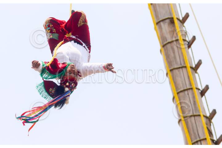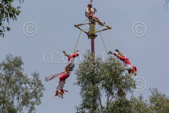 Como parte de los festejos en San Lorenzo Tepaltitlán en Toluca se lleva a cabo la presentación de la tradicional Danza de los Voladores de Papantla.