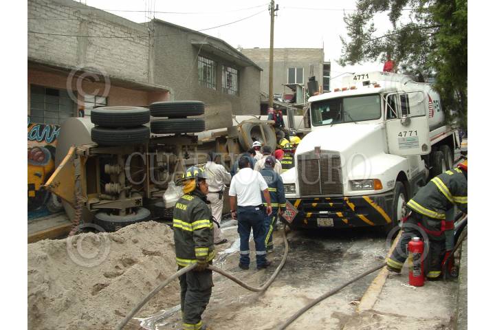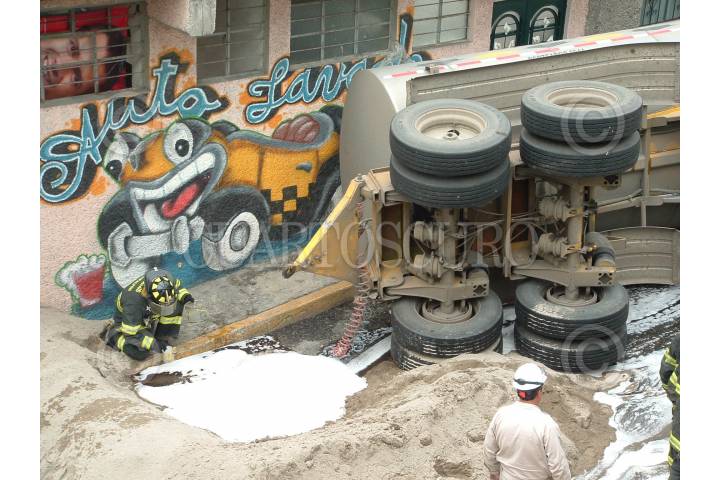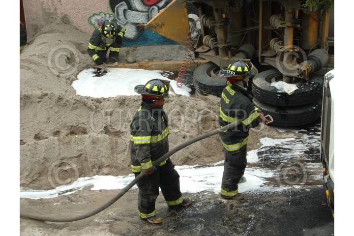 NAUCALPAN, ESTADO DE MÉXICO.- Fueron desalojadas cerca de 150 familias, luego de que una pipa de Pemex con capacidad de 30 mil litros de turbosina volcara en la colonia San Luis Tlatilco, aproximadamente 600 litros del combustible se derramaron durante los trabajos, mismos que fueron contenidos por un dique de arena. FOTO:MARIO NULO/CUARTOSCURO.COM