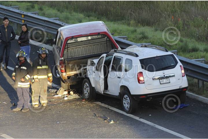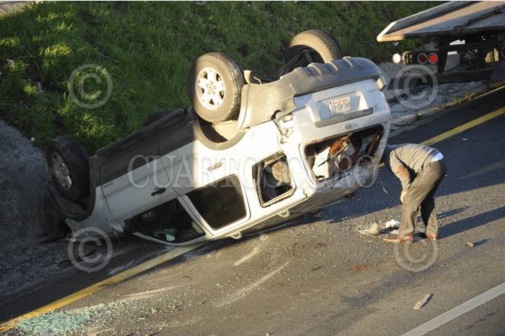 MÉXICO, D.F., 07SEPTIEMBRE2014.- En el Kilómetro 18+500 de la Autopista México-Tulancingo, se registró un accidente en el que tres camionetas se volcaron: una Picop placas MH-22-938; Renault Duster placas 645-ZTF; y Escape Ford placas HMS-43-40; con saldo de un hombre de 35 años muerto, de nombre Omar Franco Manillas. FOTO: LUIS CARBAYO /CUARTOSCURO.COM