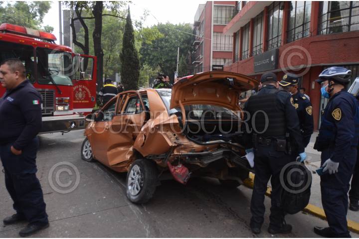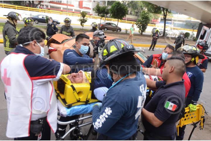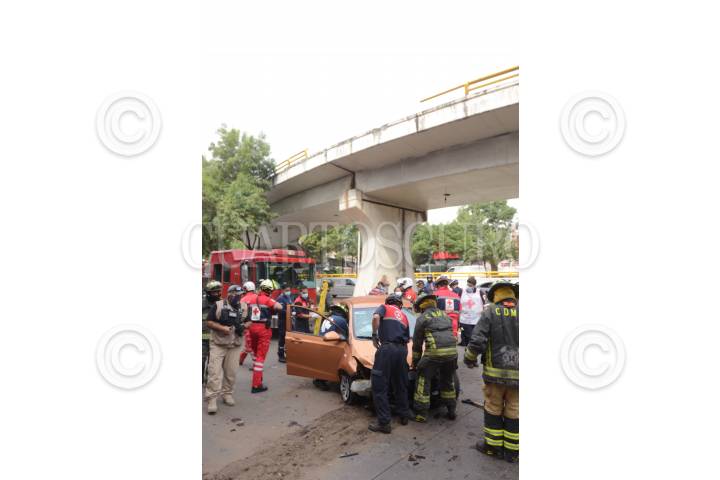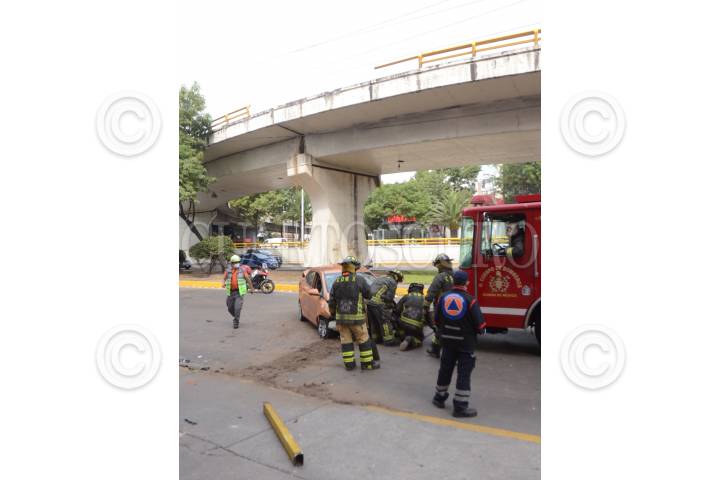 Un auto cayó de una vialidad elevado en Ejercito Nacional y Circuito Interior, el conductor salvo la vida de milagro