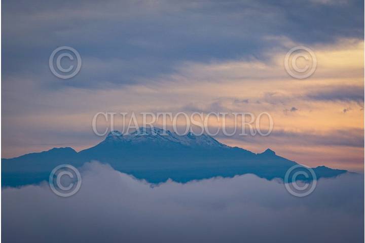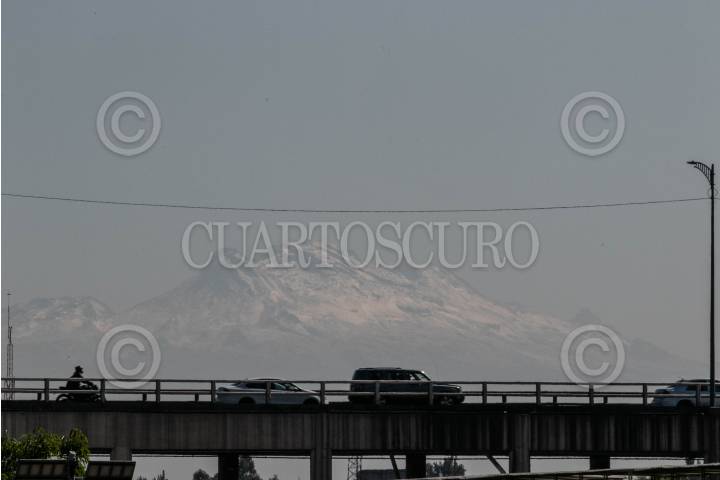 CIUDAD DE MÉXICO, 28DICIEMBRE2023.- El Volcán Iztaccíhuatl se asomó tímidamente en el paisaje de la capital, su creta se pudo observar con nieve, esto debido las bajas temperaturas de los últimos días. FOTO: MOISÉS PABLOS/CUARTOSCURO.COM