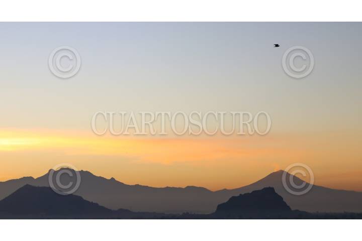 CIUDAD DE MÉXICO, 28DICIEMBRE2023.- Los volcanes Iztaccíhuatl y Popocatépetl, se pudieron observar durante el amanecer en la capital. FOTO: ELIZABETH RUIZ/CUARTOSCURO.COM
