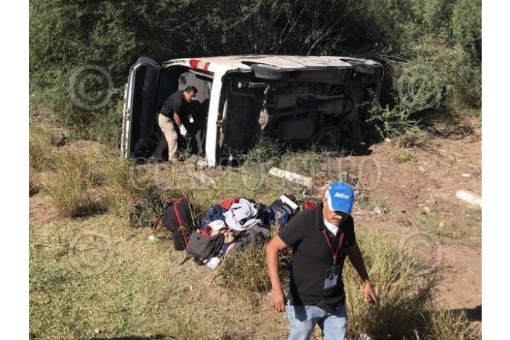 LOS MOCHIS, SINALOA, 26OCTUBRE2019.- Una reportera y un camarógrafo resultaron lesionados cuando la camioneta en la que viajaban integrantes de la prensa que cubren la gira del Presidente Andrés Manuel López Obrador volcó en la carretera que va de Los Mochis a Ciudad Obregón. Los lesionados fueron traslados al seguro social de Ciudad Obregón, y de acuerdo a los últimos reportes los demás tripulantes presentan golpes por el impacto. Lista de los 10 periodistas accidentados por volcadura: Gabriela Jiménez Arellano; Nicolás Galvan Silva; Hector Álvarez Fernández; Alberto Muñoz Tlahuiz; Sara Pablo Nava; Alma Elizabeth Muñoz Rojas; Rafael Montes Albino; Omar Franco Pérez Reyes; Romina Solís Falcóni y Pedro Villa y Caña Baena. FOTO: CUARTOSCURO.COM