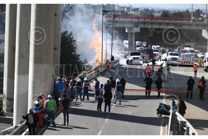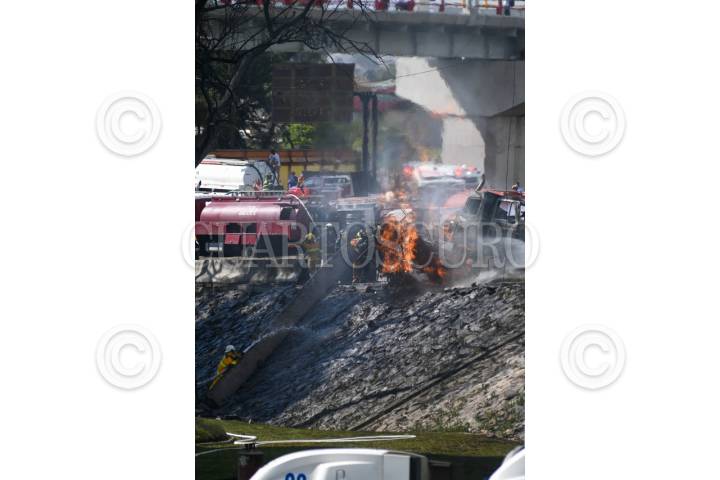 CIUDAD DE MÉXICO, 10SEPTIEMBRE2025.- Derivado de la volcadura de una pipa en el Puente de la Concordia, alcaldía Iztapalapa, se registró una explosión en la zona que provocó que varios vehículos quedarán calcinados, con saldo de 18 personas con severas quemaduras. FOTO: AGENCIA CUARTOSCURO.COM