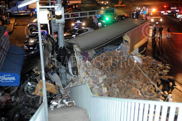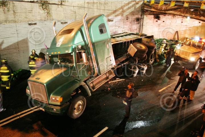 MÉXICO, D.F., 16ENERO2009.- En Eje Sur 8 Ermita Iztapalapa al salir del paso a desnivel de Calzada Tlalpan se volcó un trailer al romper su chais el cual transportaba más de 15 toneladas de limones. FOTO: LUZ ACEVEDO/CUARTOSCURO.COM