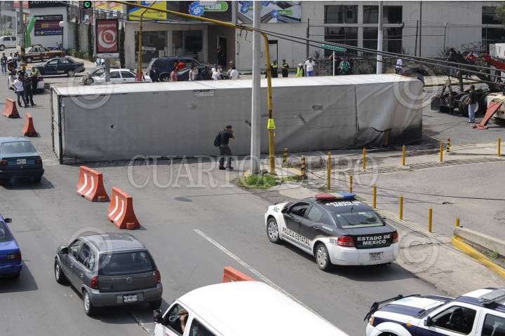TLALNEPANTLA, ESTADO DE MÉXICO, 12CTUBRE2014.- Un tráiler cargado de cartón se volcó en la calle de Toltecas y Vía Gustavo Baz en Tlalnepantla, afectado la circulación vehicular. FOTO: ARMANDO MONROY /CUARTOSCURO.COM