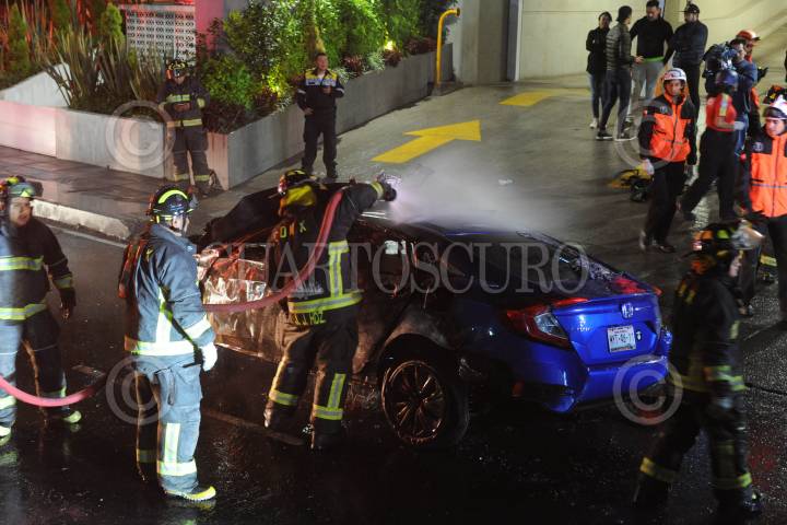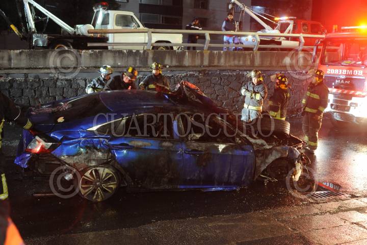 CIUDAD DE MÉXICO., 27JULIO2019.- Cinco personas resultaron lesionadas por quemaduras, al incendiarse el vehículo en el que viajaban por Periférico a la altura de Calle 4 en la colonia San Pedro de los Pinos. FOTO: LUIS CARBAYO /CUARTOSCURO.COM