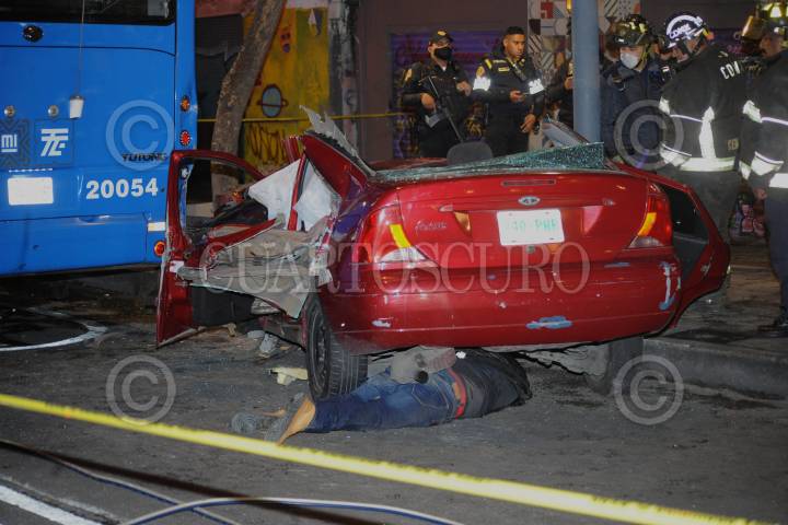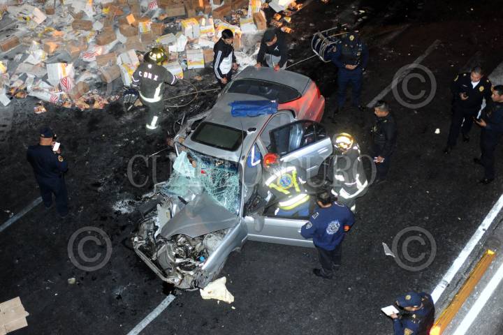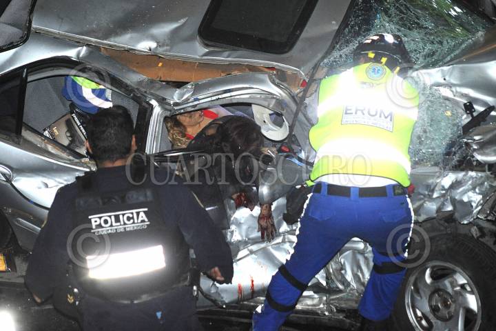 Dos muertos y dos lesionados al impactar un tráiler a vehículo compacto, en el cruce de Eje Central a la altura de Plaza Garibaldi en la colonia Centro. EL camión responsable se dio a la fuga.