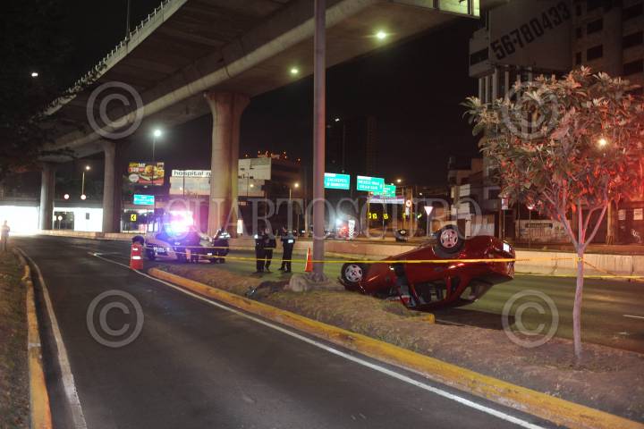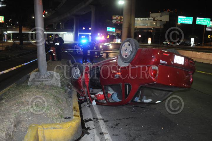 Mueren dos hombres en fatal accidente sobre Periférico en alcaldía de Tlalpan, al conducir con exceso de velocidad.