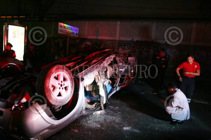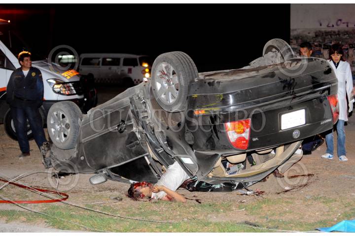 MÉXICO, D.F., 07JUNIO2009.- Una pareja pierde la vida al volcar el auto Passat placas LYJ-22-21 en el que viajaban presuntamente en estado de ebriedad, sobre avenida Zaragoza a la altura de la calle Antonio E. Campa en la colonia Ermita Zaragoza perimetro de la Delegación Iztapalapa. FOTO: LUIS CARBAYO/CUARTOSCURO.COM